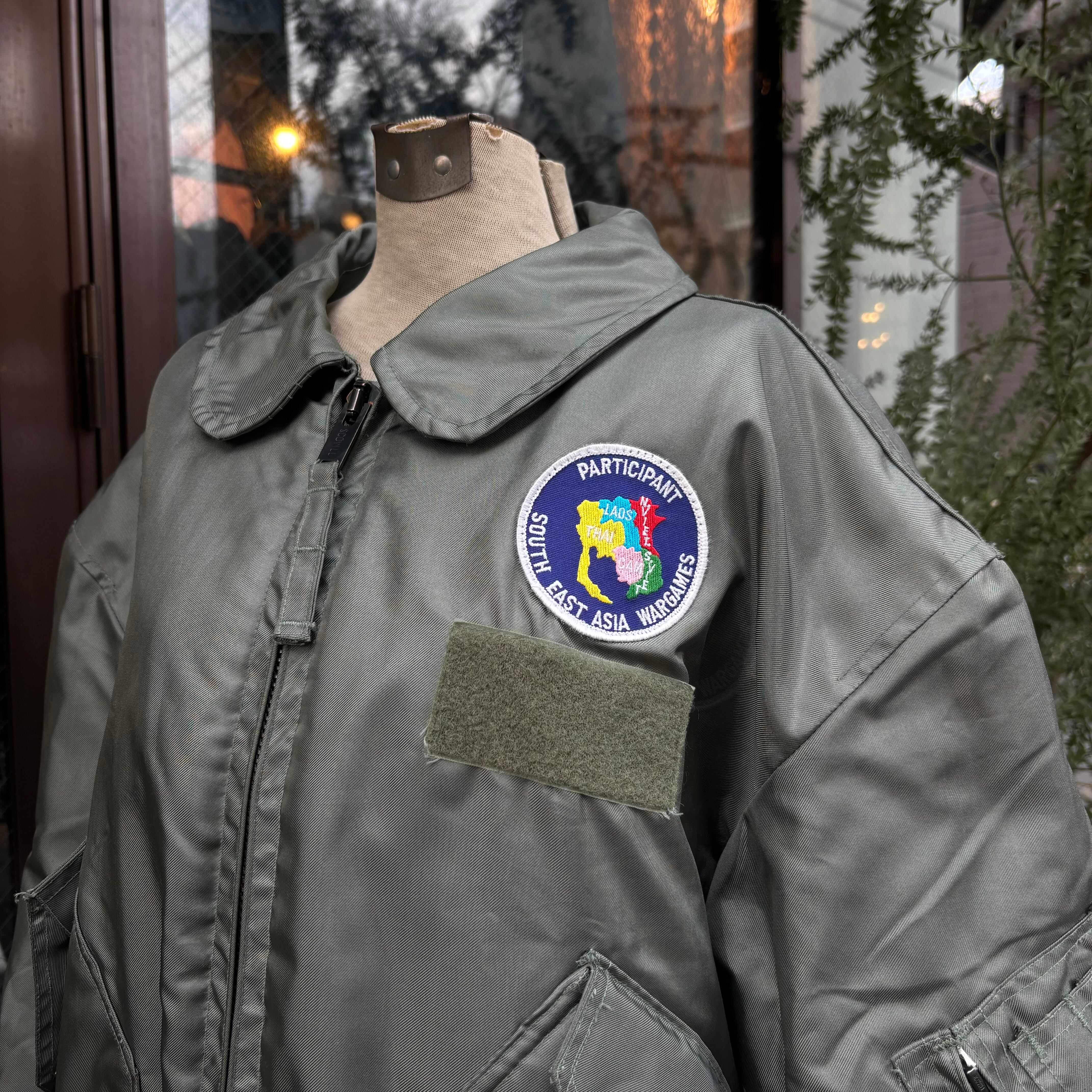 しっかりした厚みの難燃性アラミド素材。中綿が入る45/Pタイプ。ゆとりのあるリラックスフィット。いかつくなり過ぎないまるみのあるラウンドカラー。ジッパーのプルタブも残っており、素材の性質上、避けられないステッチ切れも少ない良好なコンディション。トレンドに左右されない定番ミリタリーブルゾン。現代の着こなしにもハマるおすすめの1着です。