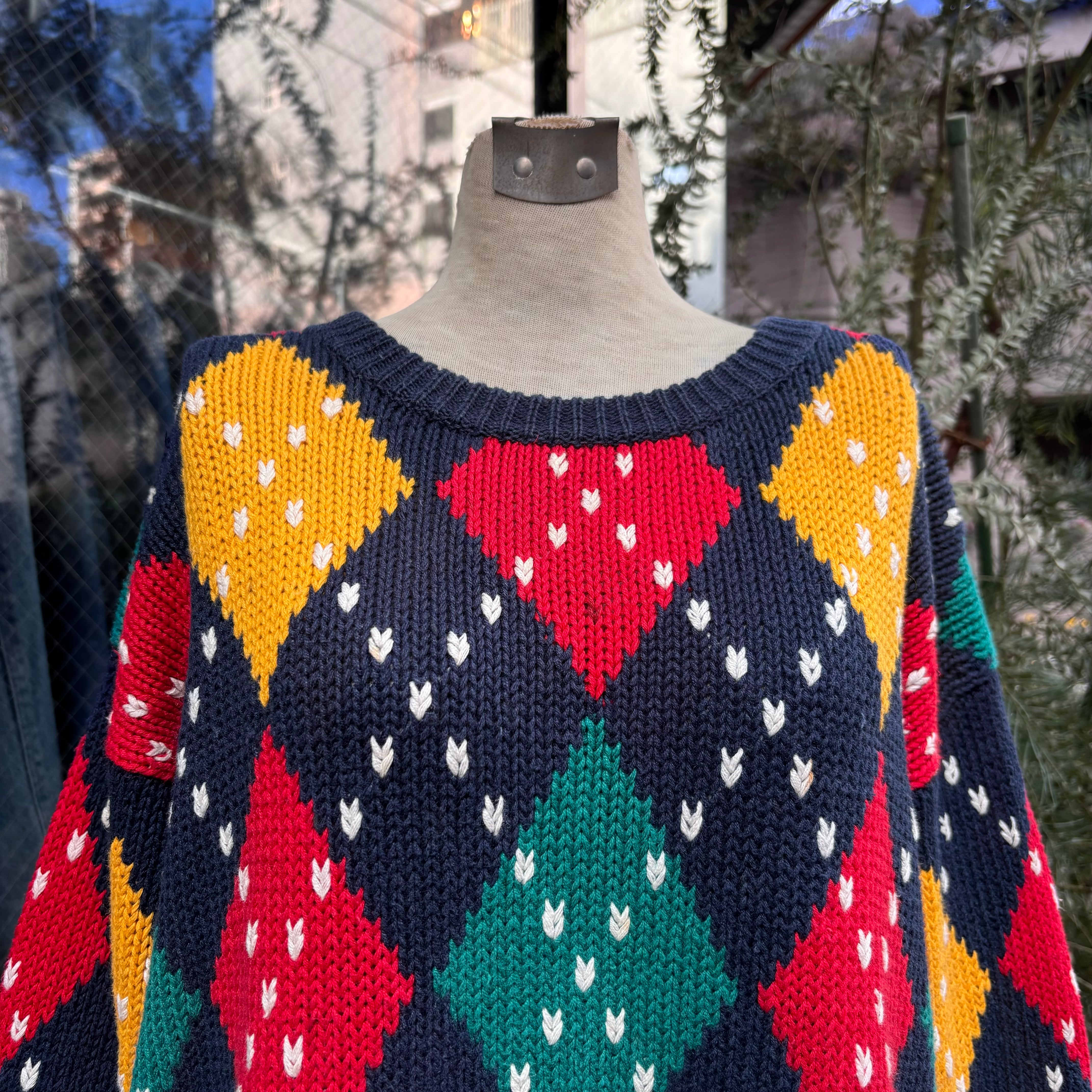 しっかりした厚みのあるコットンラミー素材。程よくゆとりのあるシルエット。90sのLIZ SPORT製。古着らしいレトロな雰囲気が可愛い1着。トラディショナルなアーガイルパターンに、トップスとして映える着丈短めの1着。