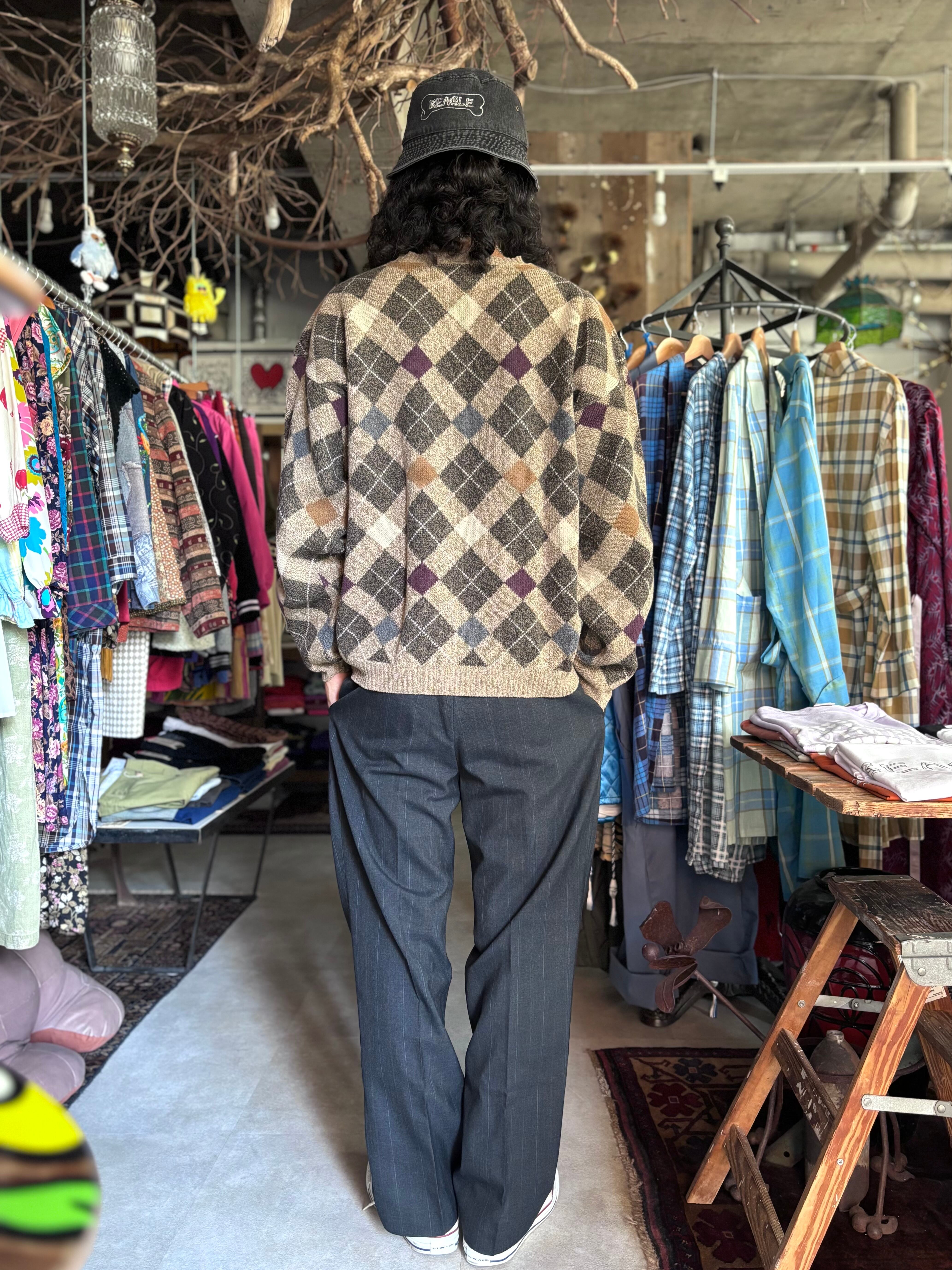 中厚のコットン素材。リラックスシルエット。クラシカルな印象のベージュベースに、トラディショナルなアーガイルパターン。USA製のOLDモデル。
