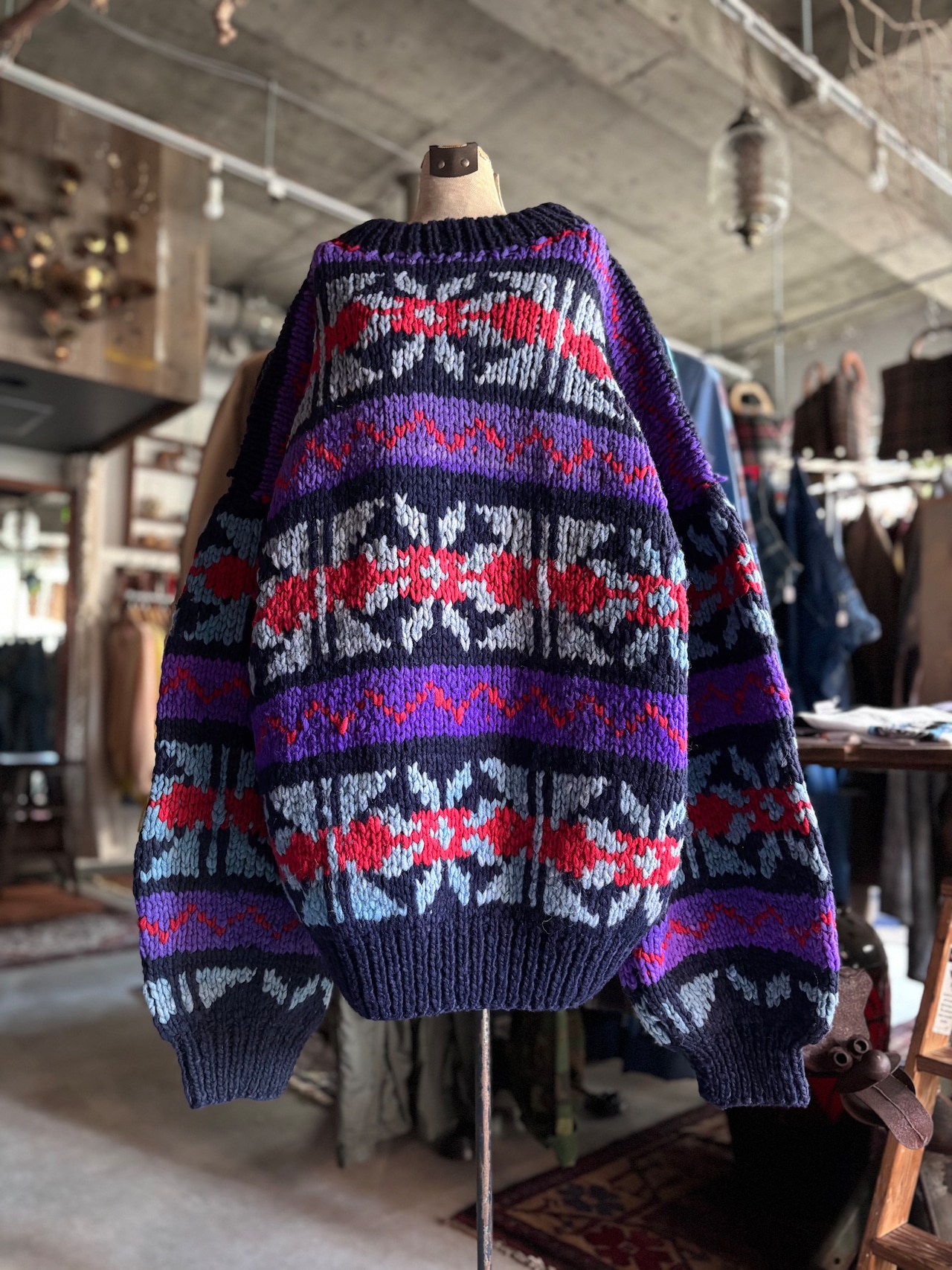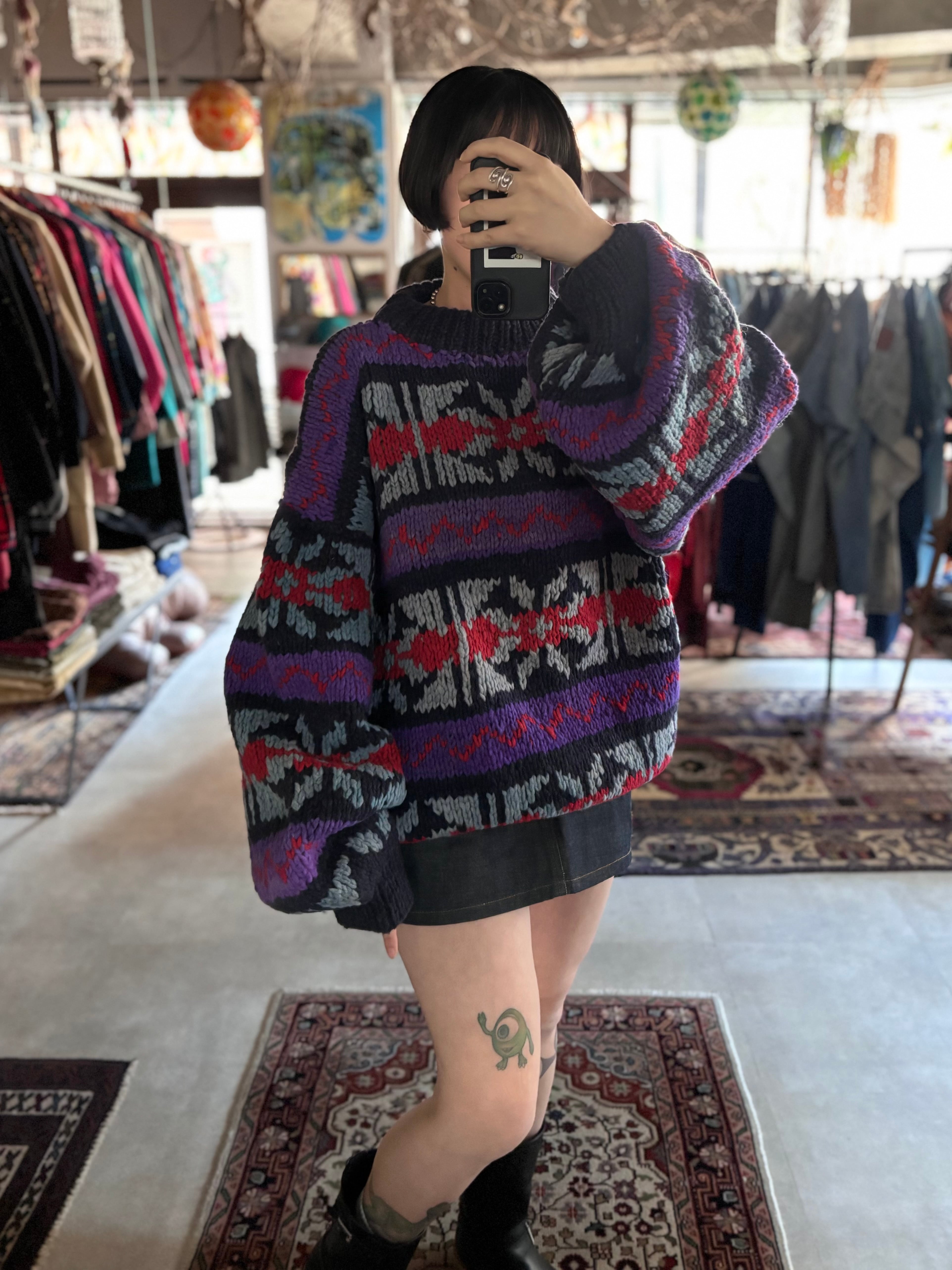厚手のウール素材。ルーズフィット。お洒落な配色のエクアドルニットです。