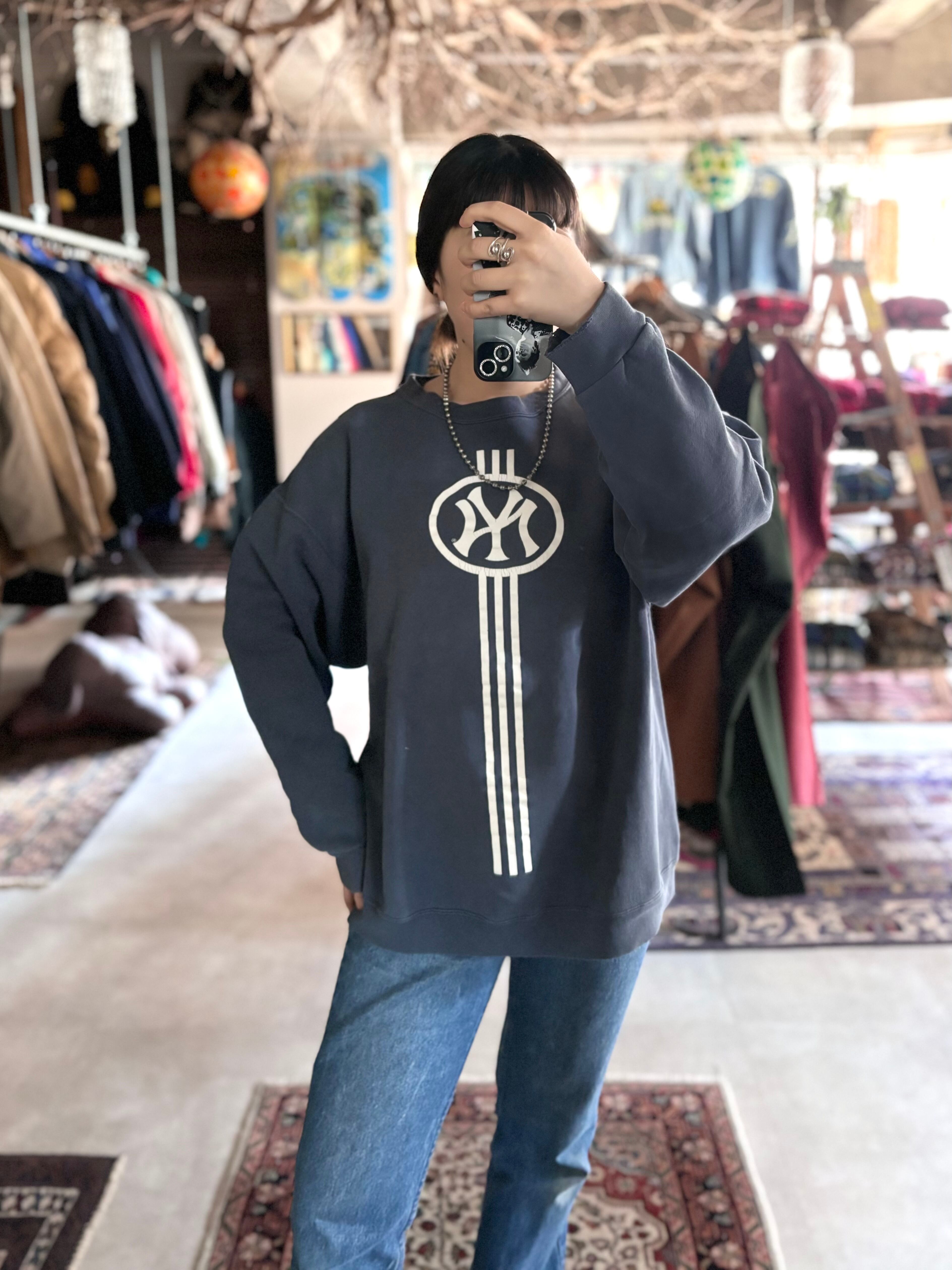 しっかりした厚みのコットンポリ素材。ゆとりのあるリラックスフィット。USA製のOLDモデル。希少なヤンキースとのダブルネーム。