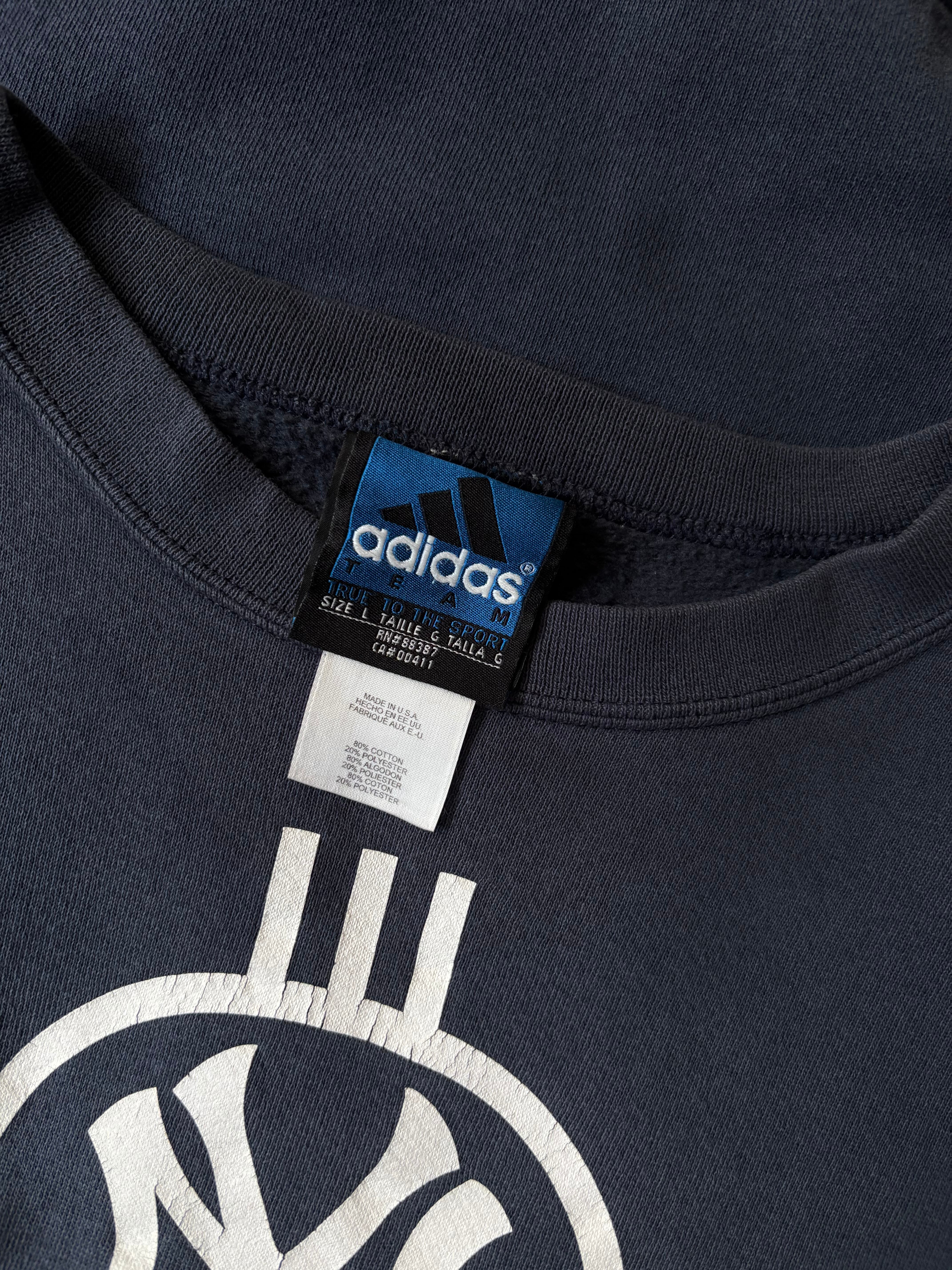 コットンポリ素材。リラックスフィット。90s USA adidas。珍しいヤンキースとのダブルネームです。