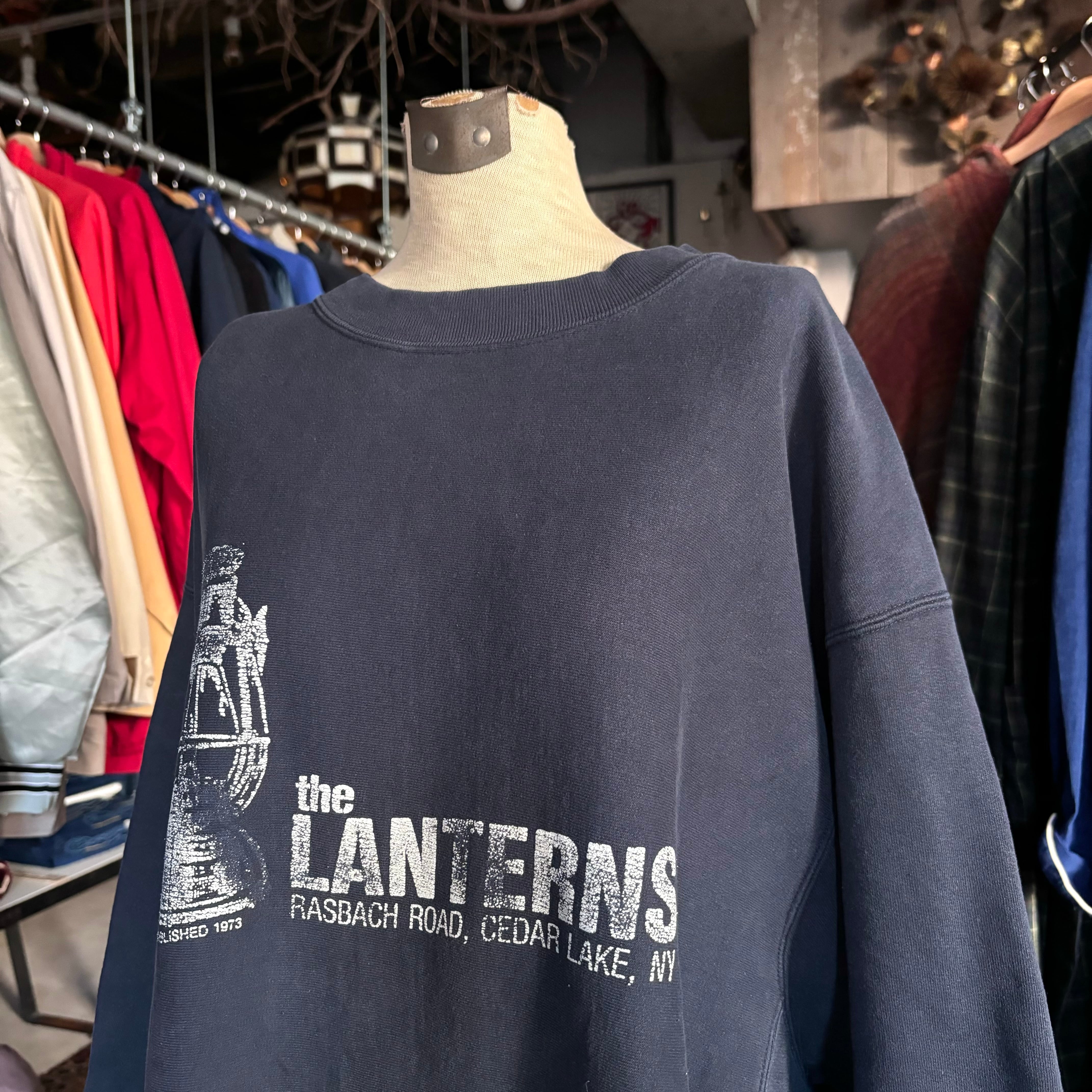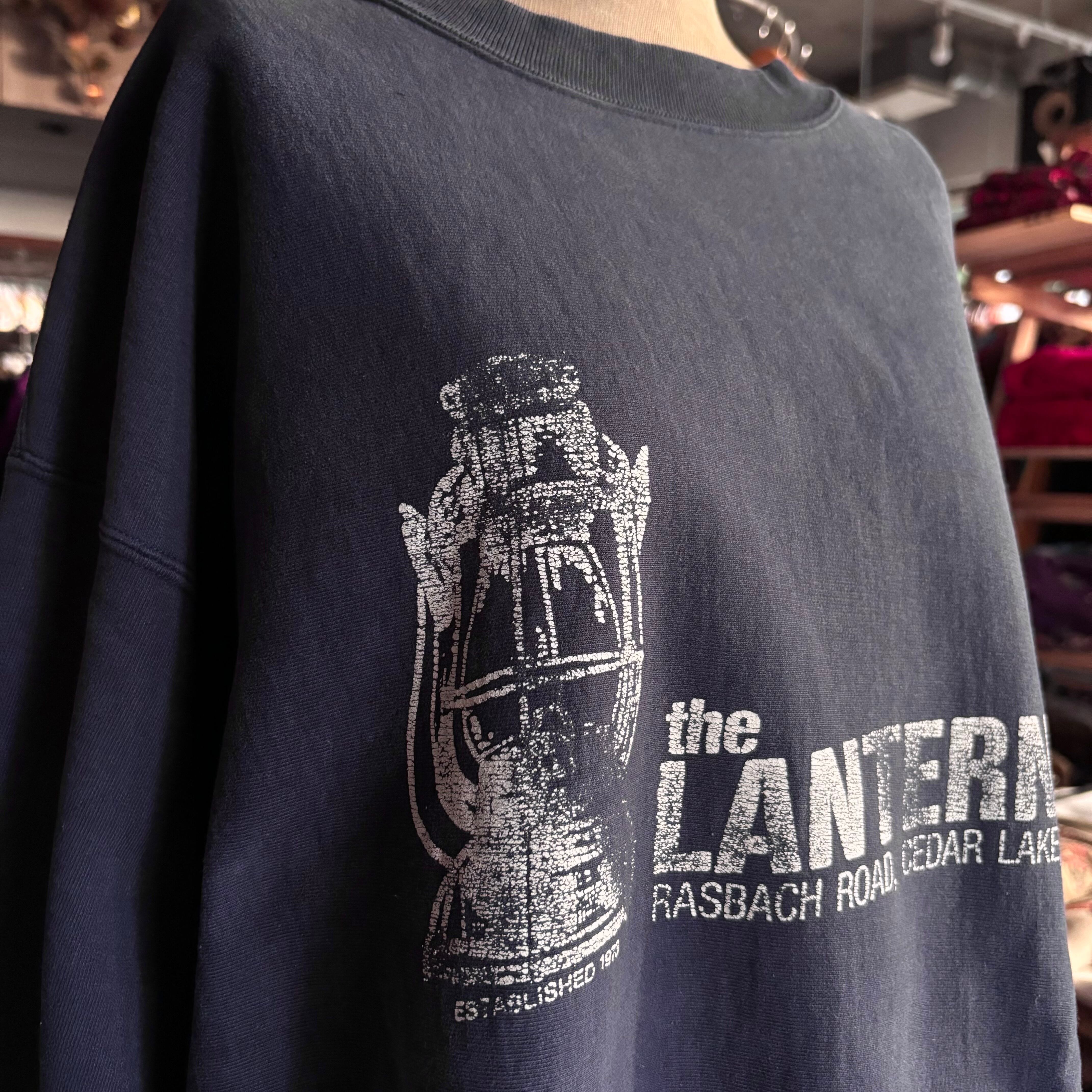 分厚くタフな着心地のコットン素材。ゆとりのあるリラックスシルエット。チャンピオンのリバースウィーブ仕様。生地の褪色、プリントの剥がれなどOLD感抜群。珍しいランタンプリント。