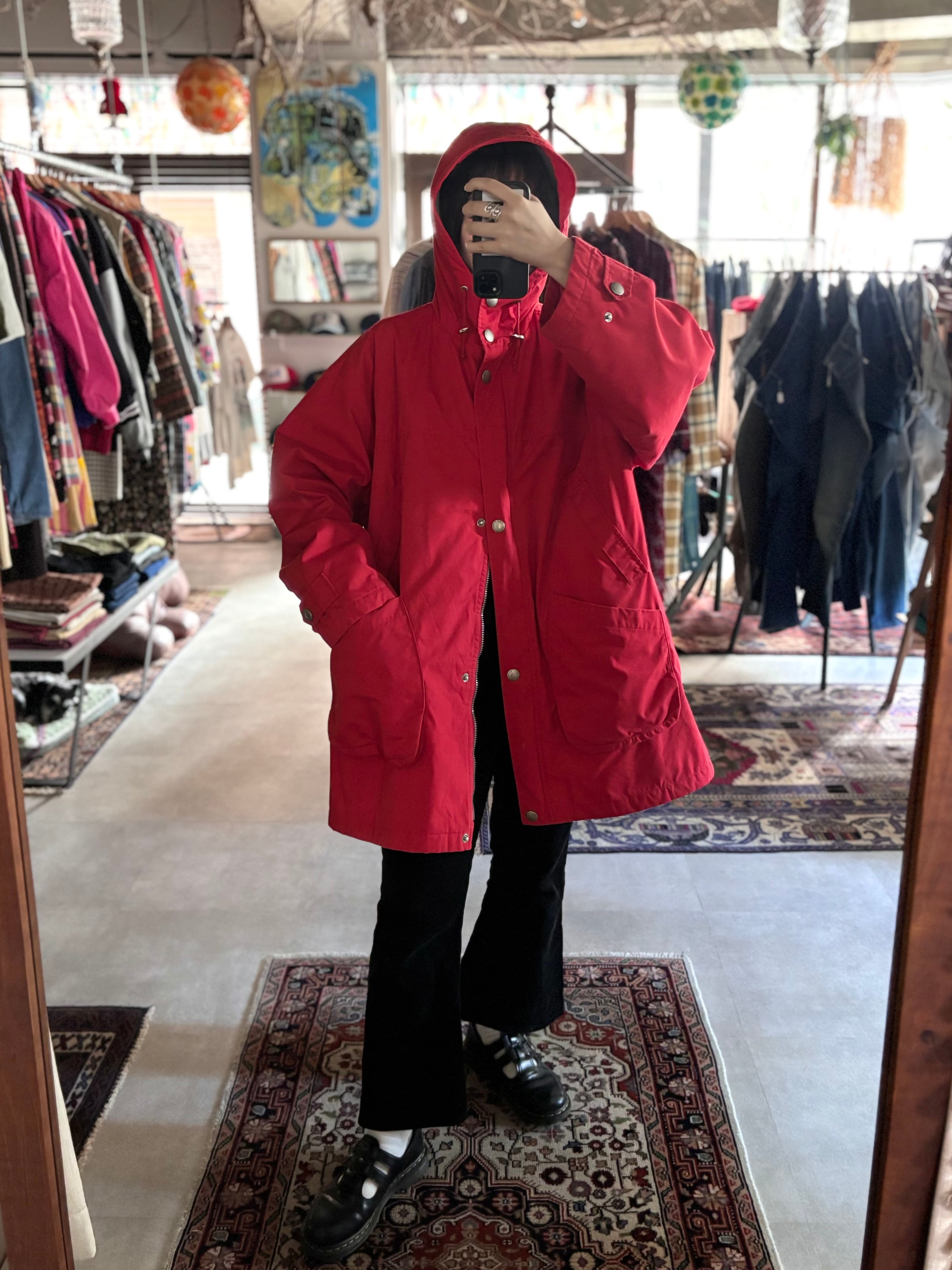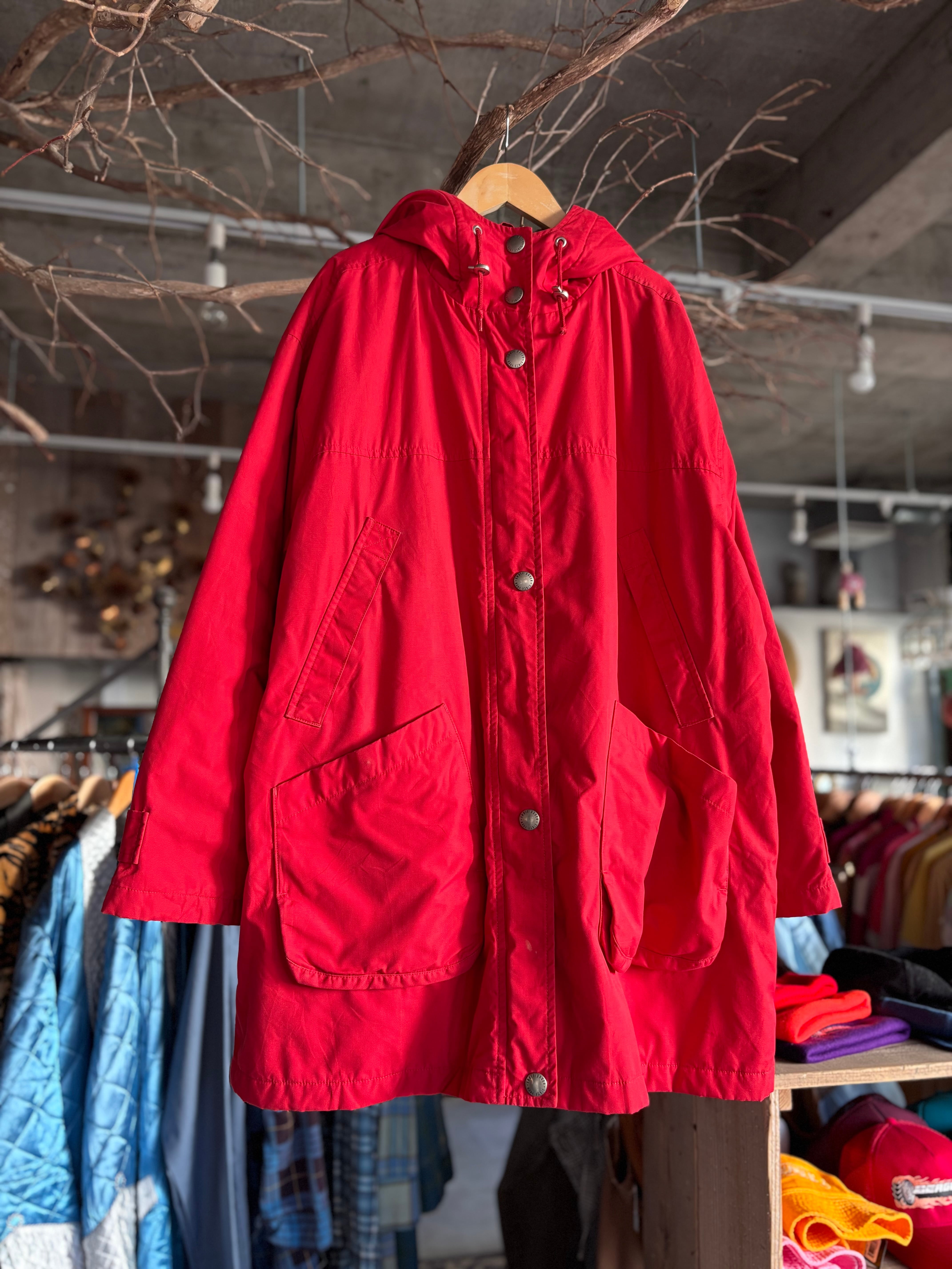 撥水素材のナイロンシェルに、内側は軽く暖かいPOLARTECフリース。高めのネックに大きめのフードで、モッズパーカーのようなルーズなシルエット。軽い着心地でしっかり暖かいので春先まで使える1着。白タグのOLDエディバウアー製。ユニセックスでおすすめです◎