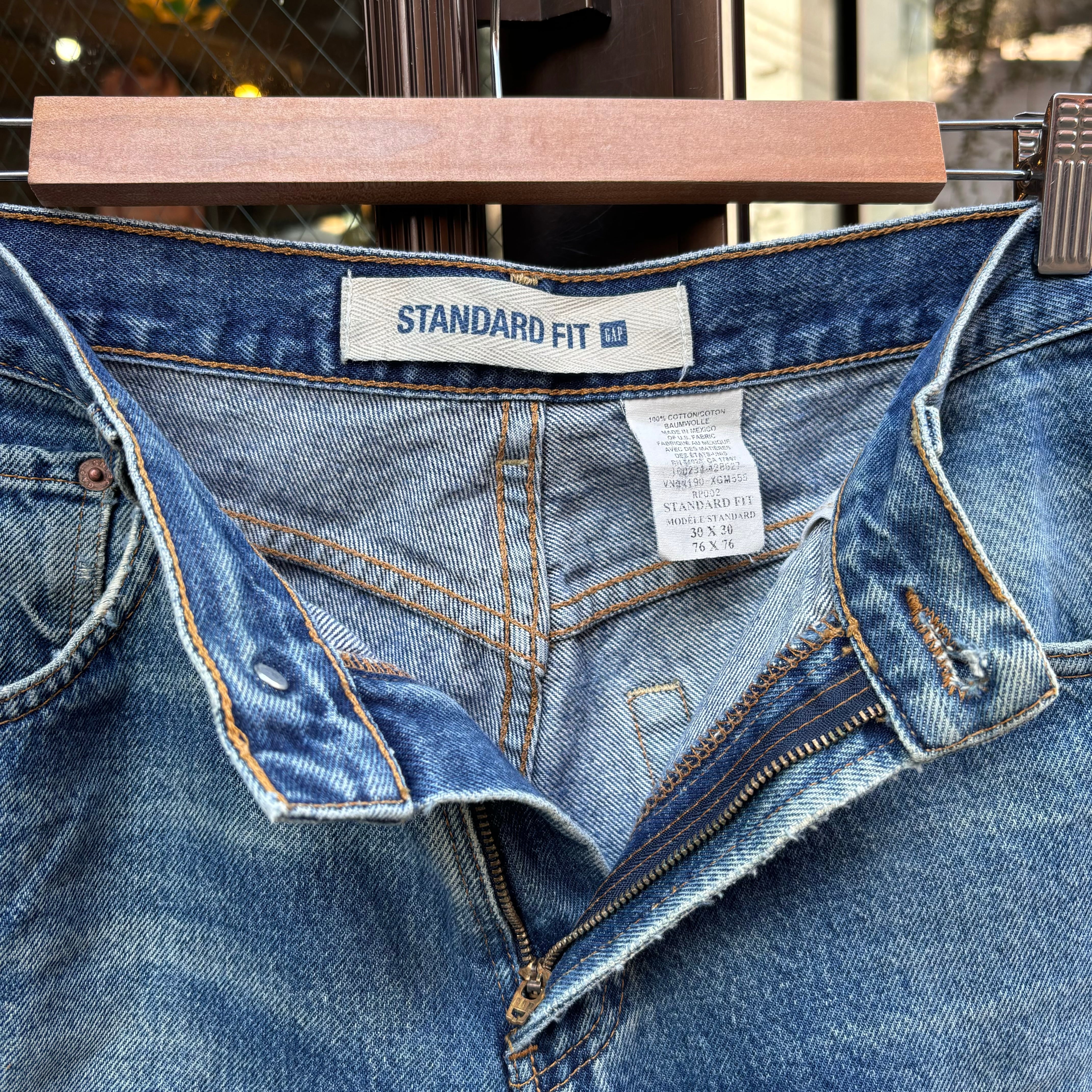 ビンテージ感抜群、仕上がった色落ちのデニム素材。膝下のラインが綺麗なナチュラルストレート。MexicoメイドのOLD GAP製。スタンダードな印象の一本。雰囲気あります。
