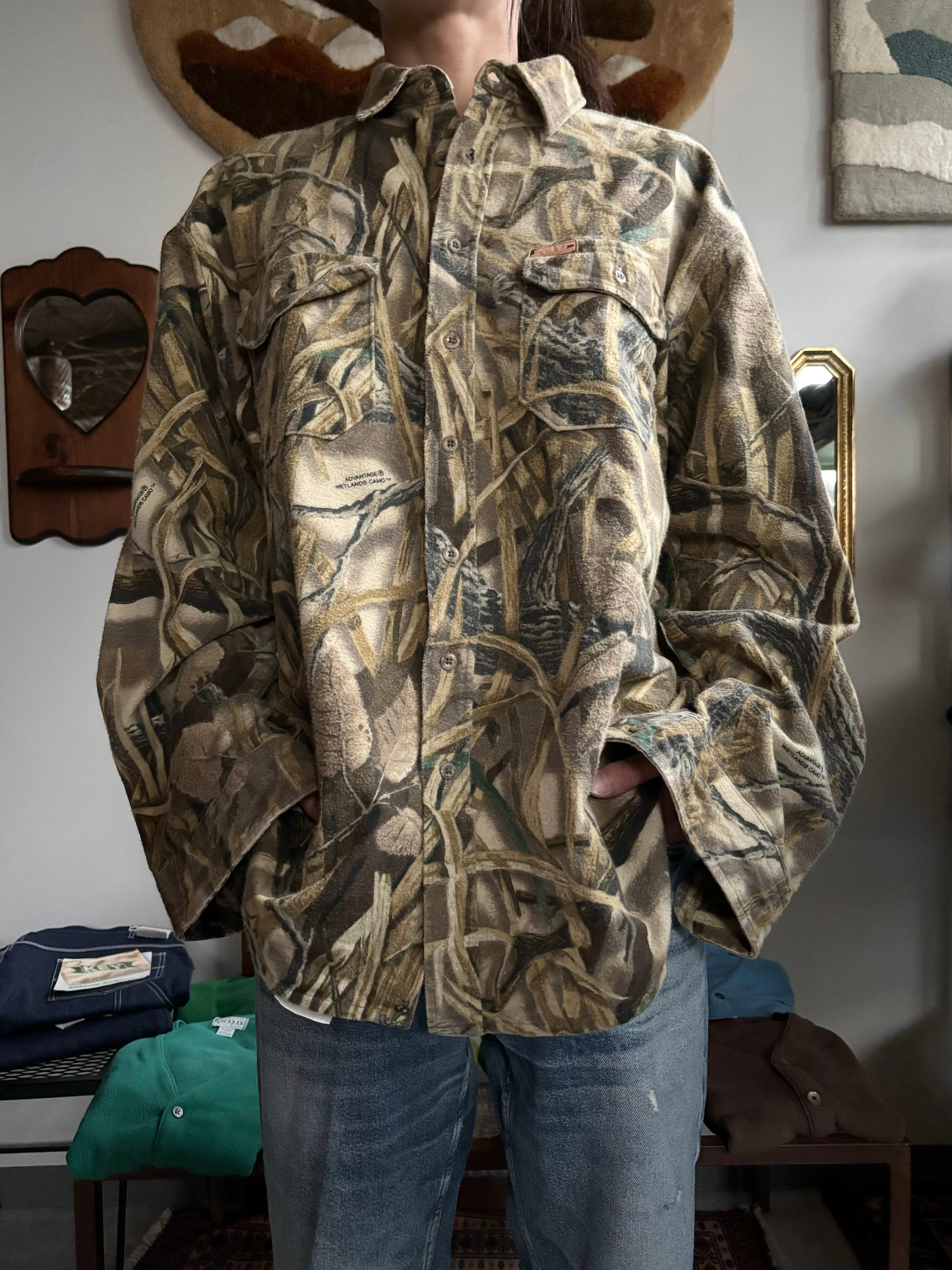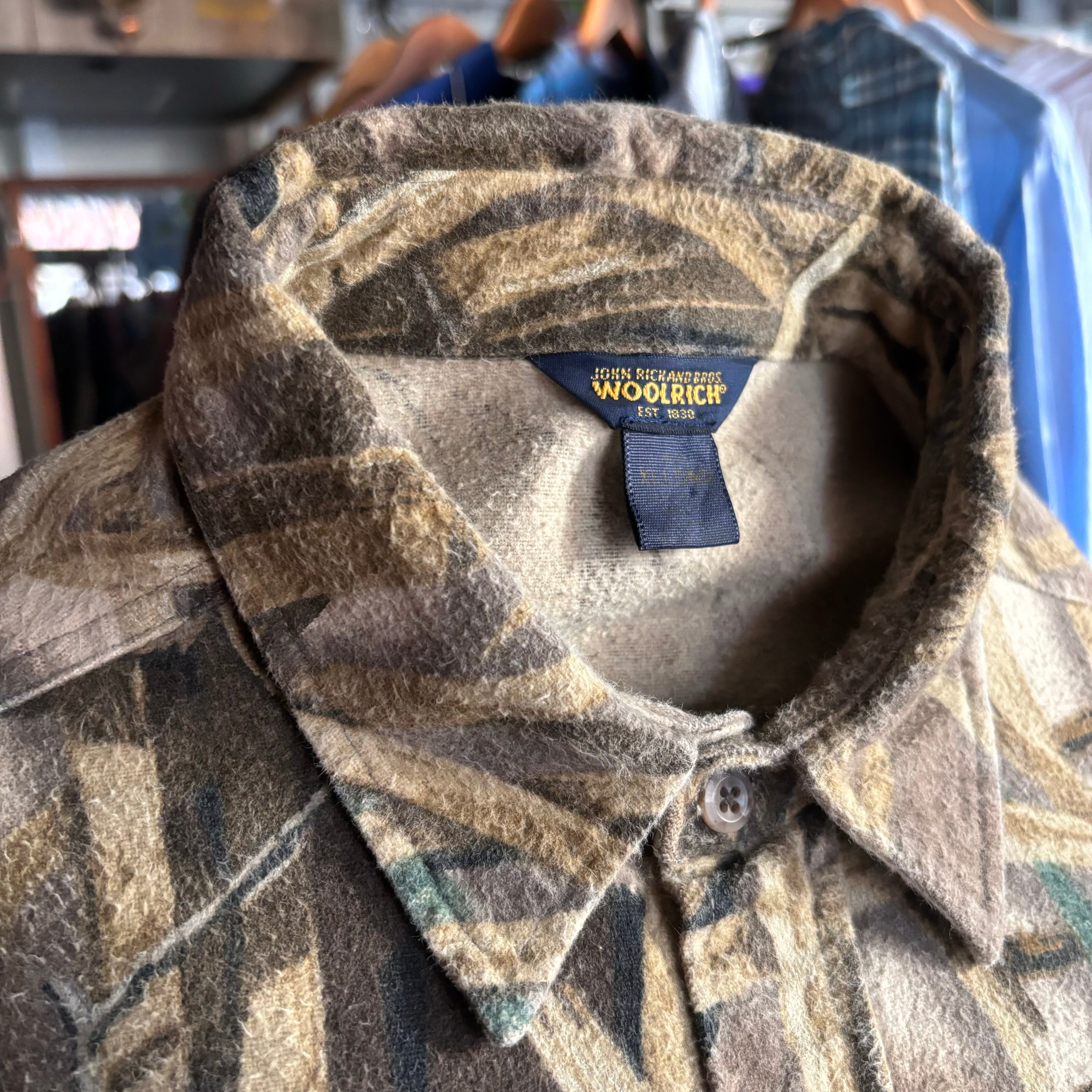 肉厚なヘビーフランネル。ゆとりのあるリラックスフィット。しっとりした印象のツリーカモ。タフなWOOLRICH製。