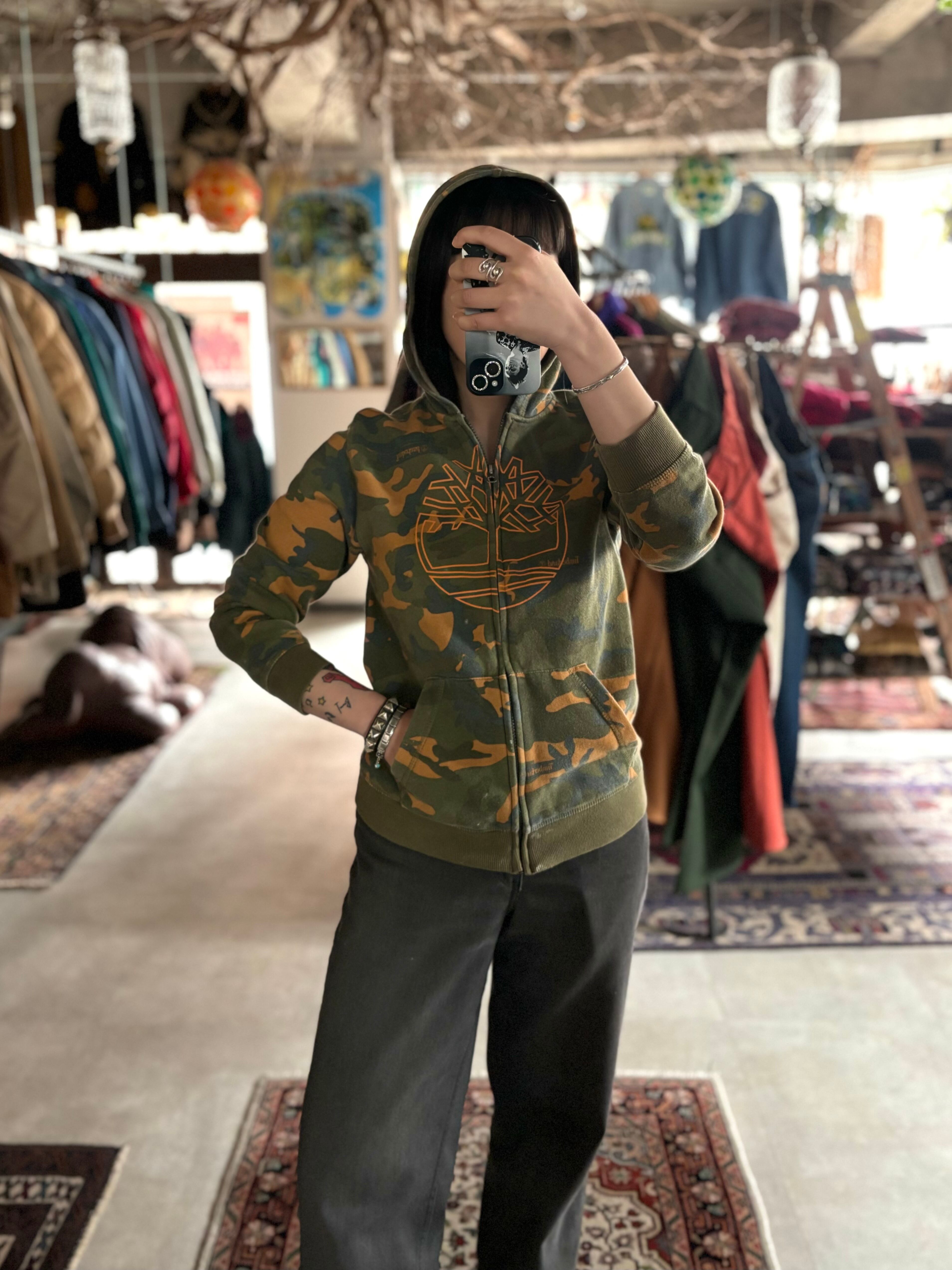 柔らかい肌触りのコットン素材。コンパクトなシルエットが可愛いKIDSサイズ。落ち着いたトーンのカモ柄。オーセンティックなHIP HOP感が魅力のOLDティンバーランド。おすすめです。