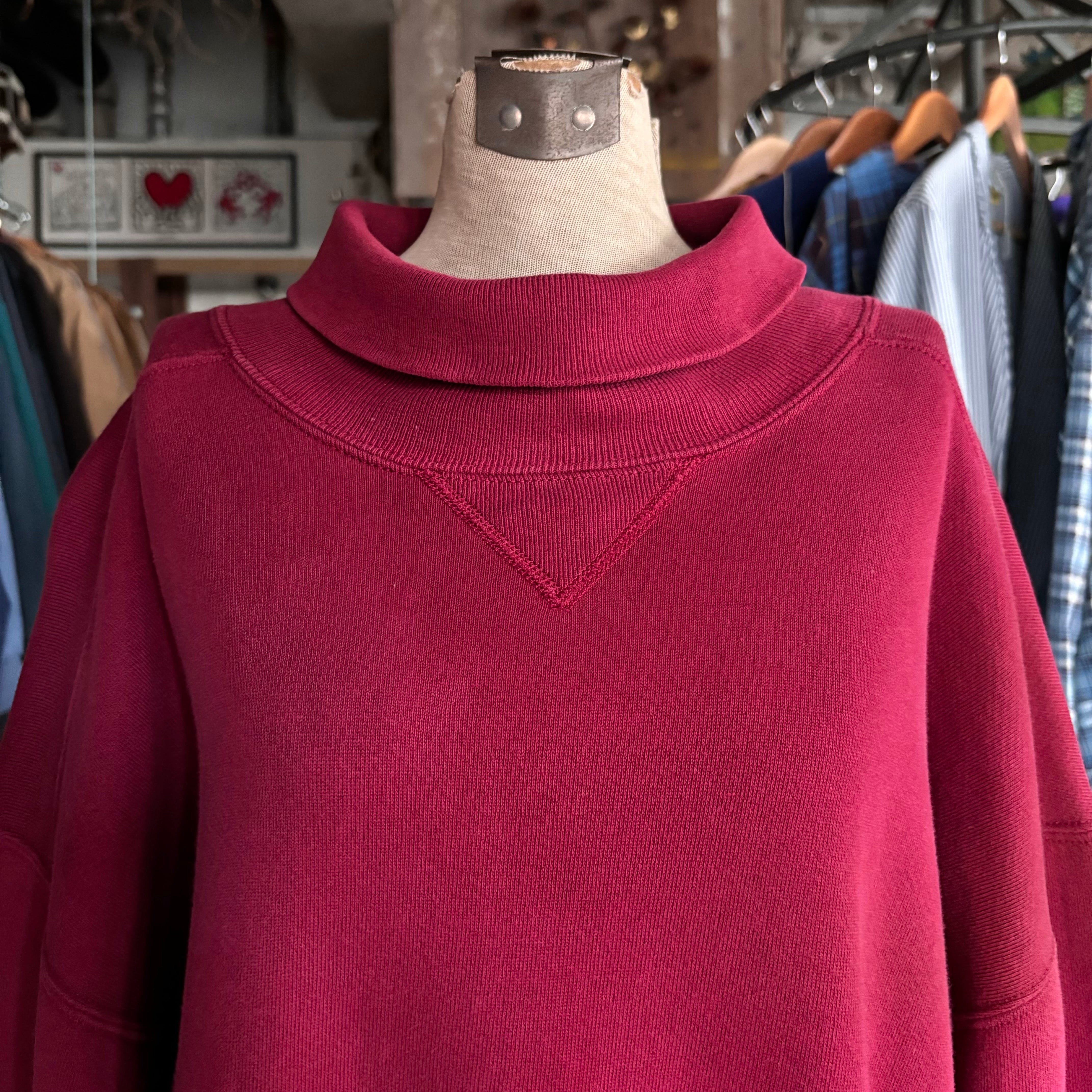 しっかりした厚みのあるコットン生地。ゆとりのあるリラックスシルエット。タートルネックに前Vのガゼット仕様。USAメイドのビンテージ。希少なL.L.BEANとRUSSELLのダブルネームモデル。